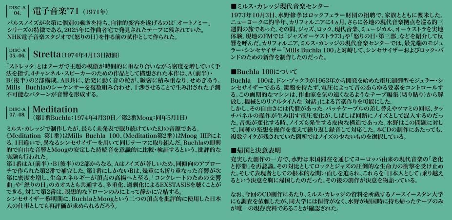 【巨匠・水野修孝『電子音楽全集』(CD3枚組)奇跡の音盤化】