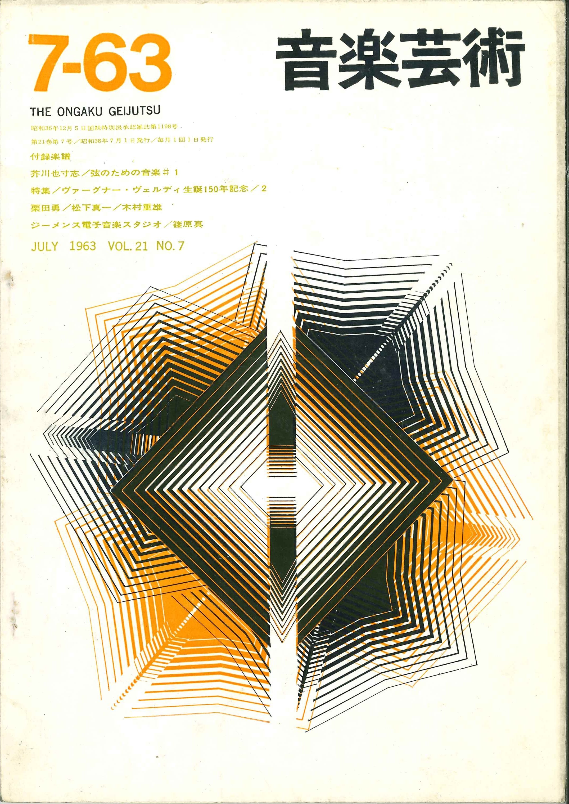音楽芸術1963年7月号「音楽時評・諸井誠」「ジーメンス電子音楽スタジオ・篠原真」ほか。付録なし